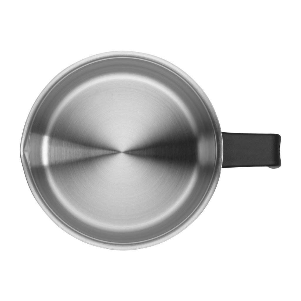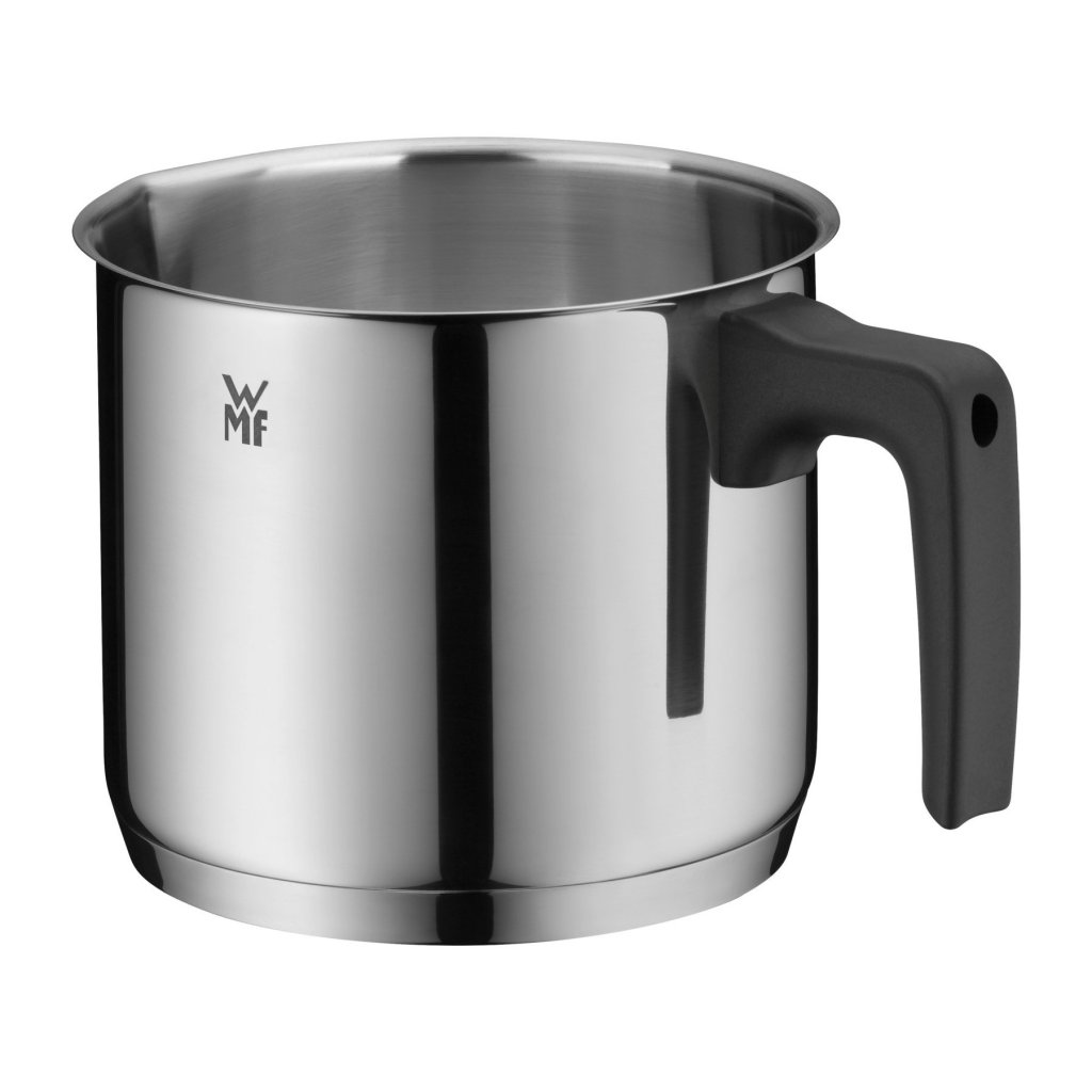 Kasserolle Milchkännchen WMF mit einem Durchmesser von 14 cm ist aus poliertem Cromargan® Edelstahl gefertigt und hat einen Kunststoffgriff. Er eignet sich zum Erhitzen und Garen empfindlicher Speisen wie Milch oder Sahnesaucen. Der universelle TransTherm®-Boden verteilt die Wärme schnell und ist für alle Herdarten geeignet, auch für Induktion. Kasserolle ist leicht zu reinigen, man kann es auch in der Spülmaschine waschen.