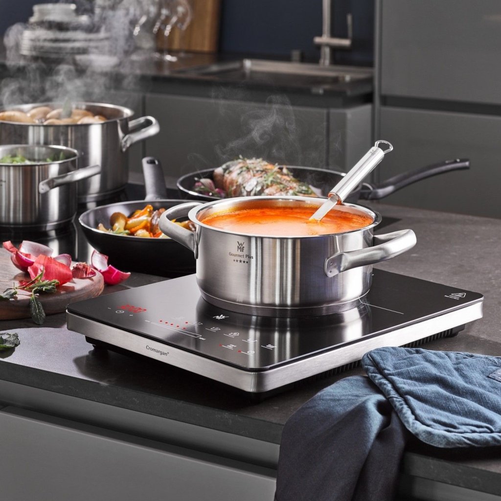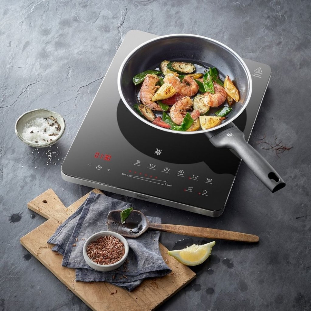 Der KULT X Mono-Induktionsherd der deutschen Marke WMF bringt Ihnen eine weitere Möglichkeit, bequemes Kochen zu genießen. Verwenden Sie den Mono-Induktionskocher als Erweiterung Ihres Herdes für das große Kochen zu Hause in der Küche, in einem kleinen Single-Haushalt und unterwegs. Das intuitive Touch-Bedienfeld ist einfach zu bedienen. Voreingestellte Modi und ein Timer sind von Vorteil. Der Induktionsherd erkennt automatisch die Größe des Kochgeschirrs und kocht so besonders wirtschaftlich.
