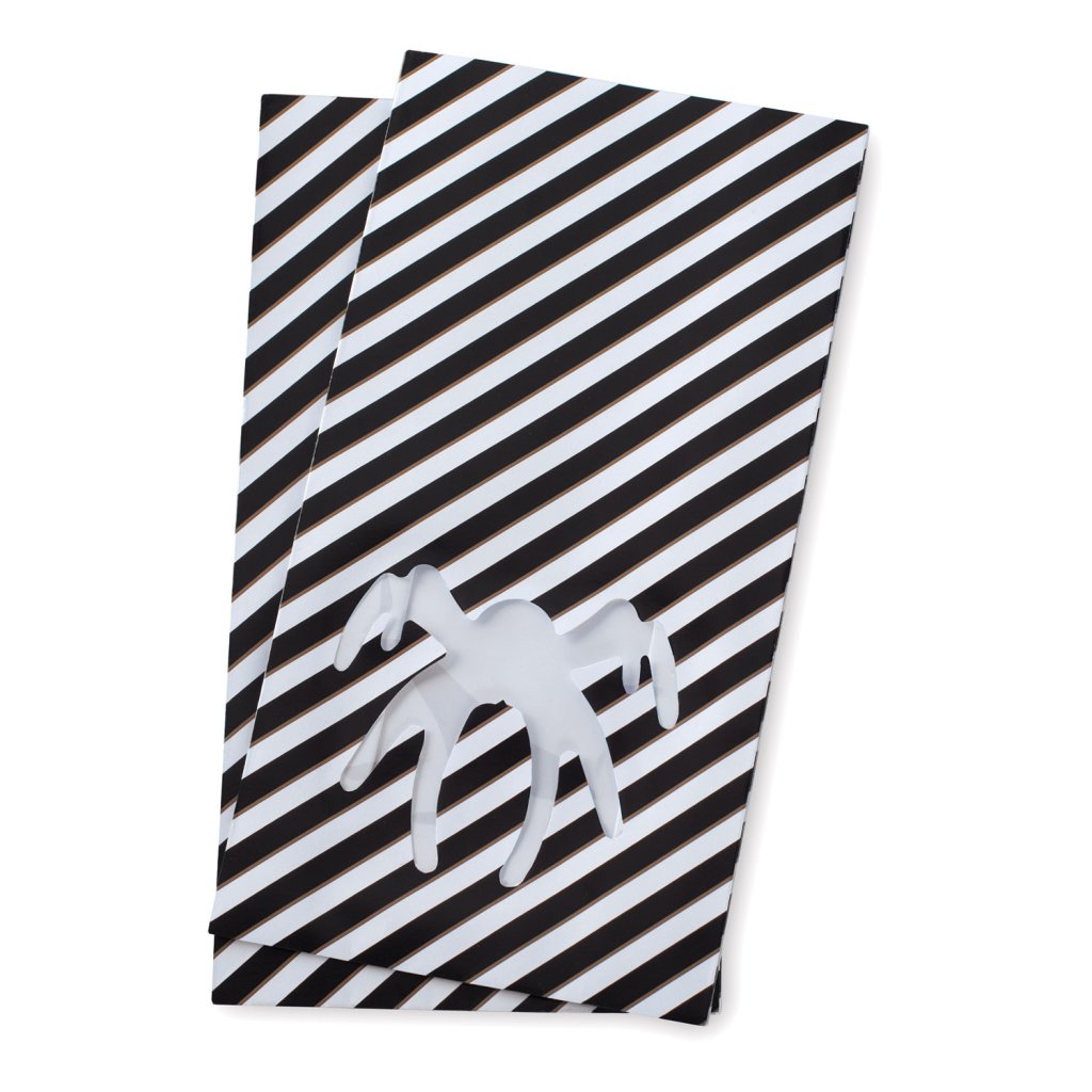 - Die Taschen sind aus schwarz-weiß gestreiftem Papier gefertigt