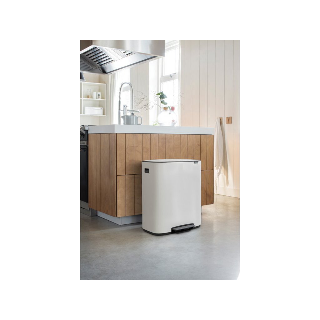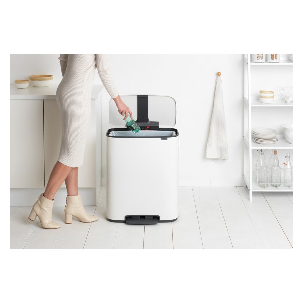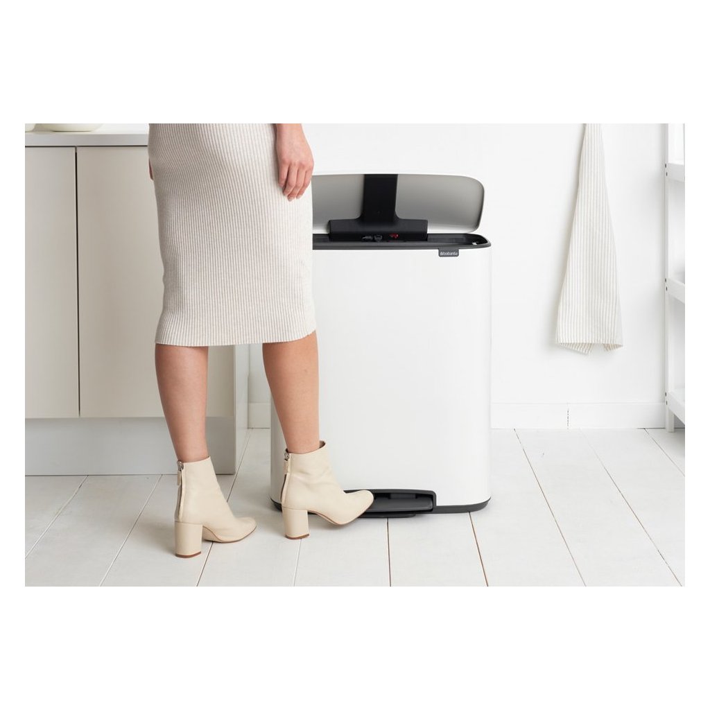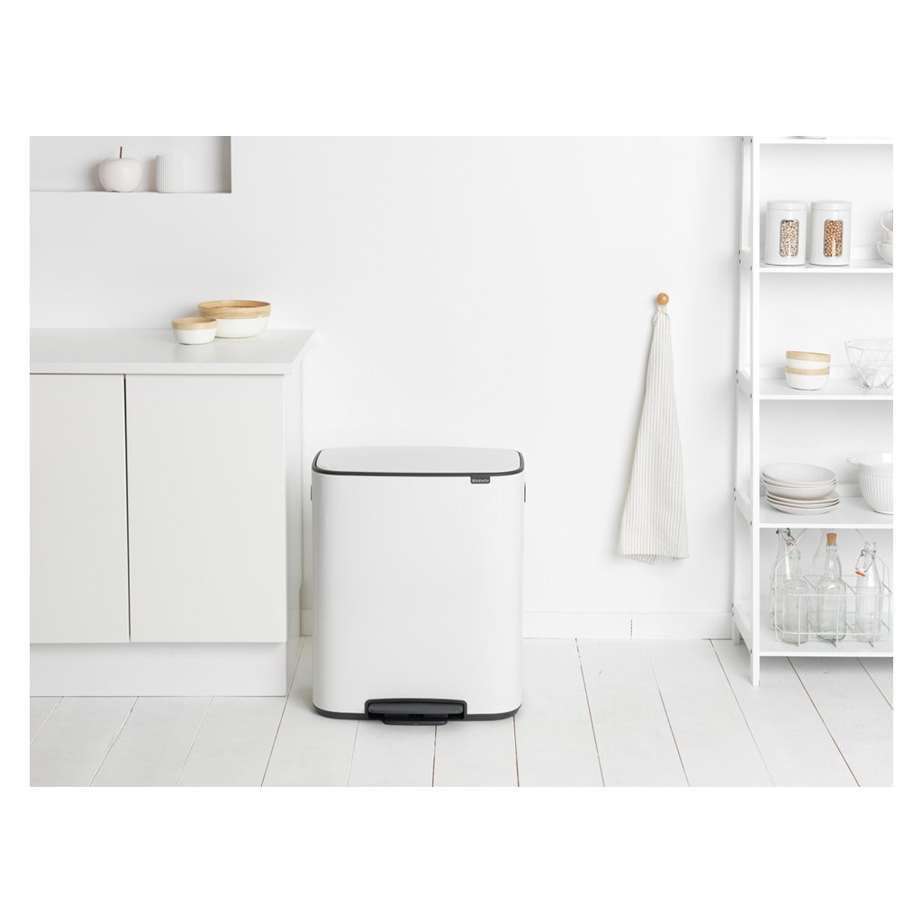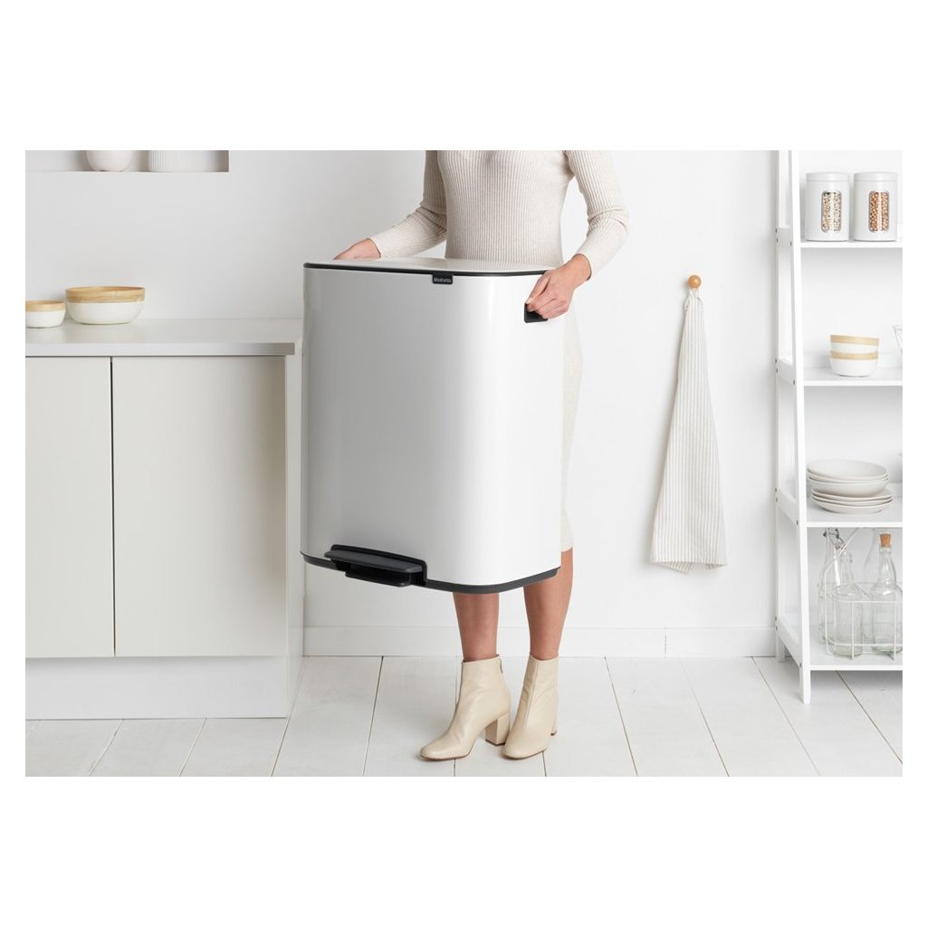 Suchen Sie nach einer angenehmen Abfalllösung für Ihr Familienleben? Dieser Bo-Pedal-Korb kombiniert ein schönes Design mit einem großen Fassungsvermögen. Schön an der Wand haftend, schont die rutschfeste Unterseite den Boden und sorgt für ein hohes Maß an Stabilität. Dank des eingebauten Mechanismus schließt sich der Deckel langsam und sehr leise. Hergestellt aus hochwertigen Materialien - 10 Jahre Garantie.