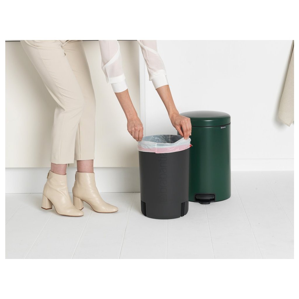- Im Lieferumfang enthalten ist eine Probepackung von Abfallbeuteln Brabantia, die genau in diesen Behälter passen