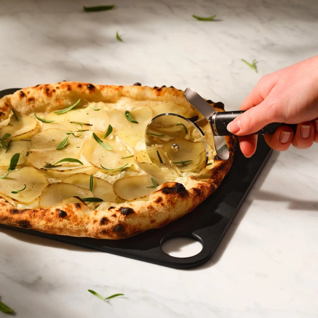 - Scharfe Edelstahl-Rundklinge schneidet sanft durch knusprigen Teig und reichhaltig beschichteten Pizzabelag