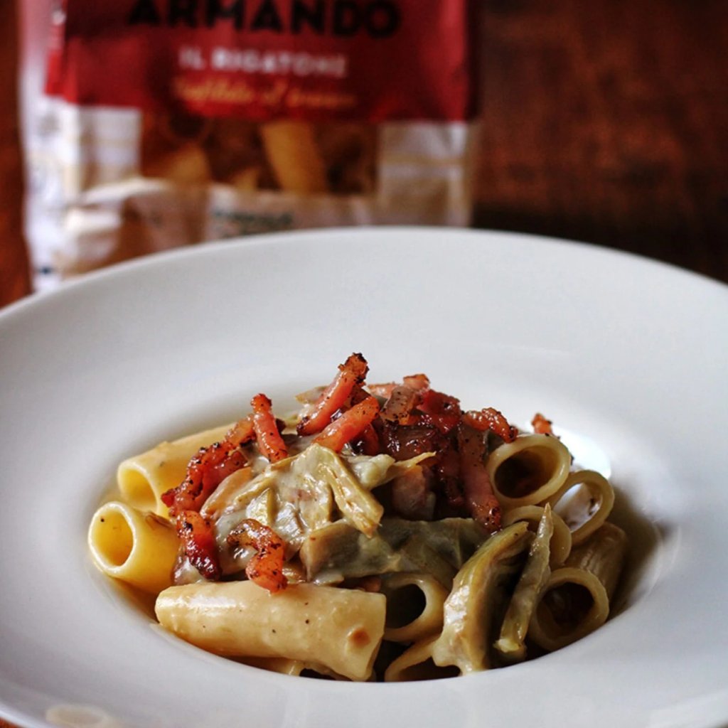 - ARMANDO Rigatone ist ein Beispiel für eine Pasta, bei der die sorgfältige Arbeit von Bauern, Müllern und Produzenten in ein einfaches Gericht verwandelt wird, das nach ehrlicher italienischer Tradition schmeckt.