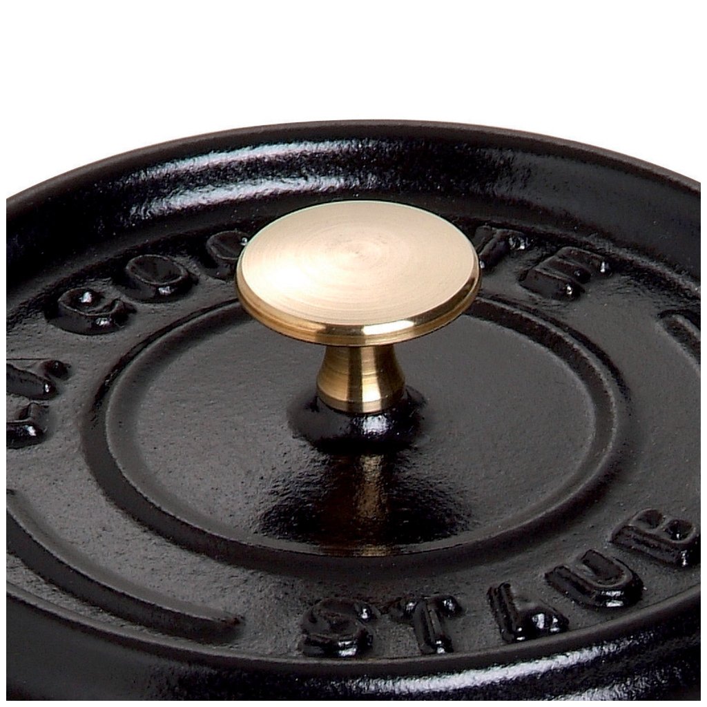 Messing-Rundgriff am Deckel der französischen Marke Staub passt zu den Deckeln der Staub kleineren Größen. Der Griff ist ein unverzichtbares Element für die bequeme Handhabung, aber auch ein Designelement Ihres Kochgeschirrs.