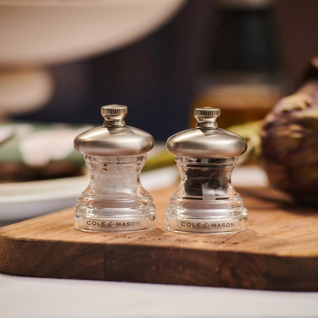 - Salz- und Pfeffermühle Set Cole & Mason BUTTON ist eine ideale Wahl für Mahlzeiten im Freien und Picknicks mit Schwerpunkt auf kompakten Abmessungen und einem modernen Look