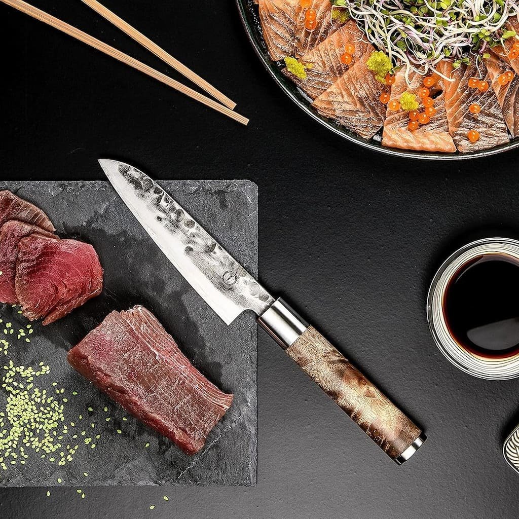 - Das Santoku ist eine beliebte Wahl für Profis und Heimwerker, die ein zuverlässiges Messer mit einem authentischen japanischen Ausdruck suchen