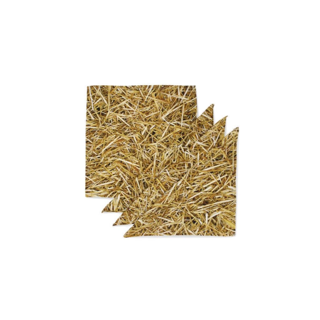 Das Set aus 4 Stoffservietten mit Stroh-Motiv (die auch als Tischsets verwendet werden können), wird jede Küche oder jedes Esszimmer mit seinem warmen, gemütlichen Druck verschönern. Das Stroh-Motiv passt zu jeder modernen, minimalistischen sowie skandinavischen Einrichtung, aber auch zu einer rustikalen Küche, einem Ferienhaus oder einem Restaurant. Sie können sie im Ostern benutzen, und zwar zusammen mit einer weißen Tischdecke für einen schönen Kontrast. Er passt hervorragend zu weißem Porzellan, grünen Salaten und gelben Hühnern.