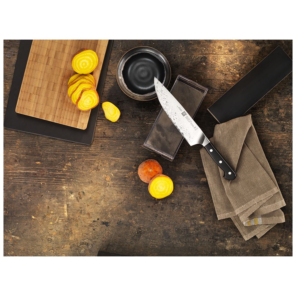 Jedes Messer muss von Zeit zu Zeit geschärft werden. Zum Schärfen von Messern der ZWILLING ® Pro Serie empfehlen wir den 23 cm langen Hartmetall beschichteten Schärfer TWIN® 1731, auch ZWILLING Schärfer und Schleifsteine können verwendet werden. Wir bieten auch Original-Schleifen direkt beim Hersteller an - wir können das Messer nach ZWILLING J schicken lassen. A. Henckels in Deutschland. Bei Bedarf können wir Ihnen auch eine Messerschmiede mit Erfahrung im Schärfen von ZWILLING Messern in Prag empfehlen.