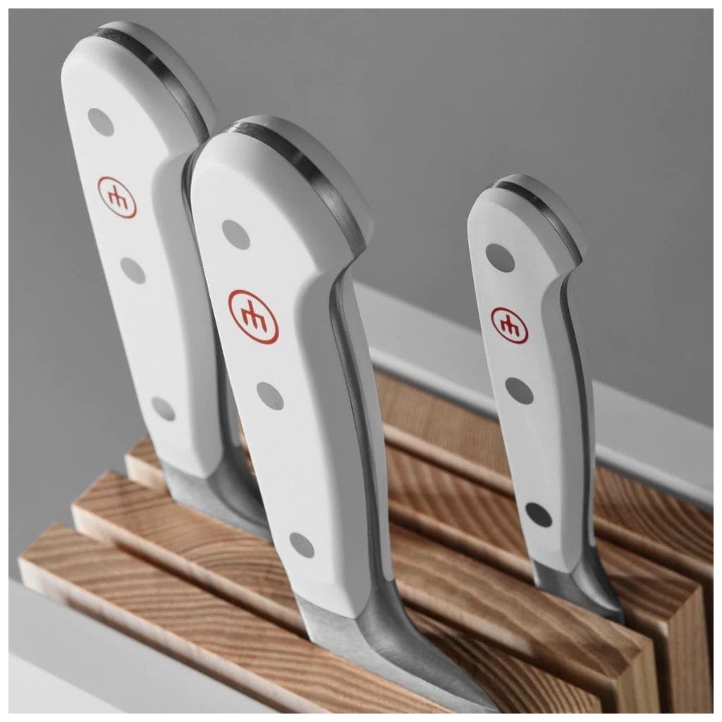 Das perfekte Original für Fans von Qualitätslebensmitteln. Ideal Messerblock CLASSIC Weiß. WÜSTHOF hat einen Messerblock entworfen, der dem Aussehen und Charakter der Classic White Messer entspricht. Der entworfene Messerblock bietet Flexibilität bei der Aufbewahrung von Wüsthof-Messern. Er ist nicht nur ein Designerstück für die Küche, sondern auch ein attraktives Geschenk. Der Messerblock ist gefüllt mit Messern aus der Serie Classic White erhältlich. Die neuen Classic-Modelle mit weißen, farbbeständigen Griffen ergänzen die erfolgreiche Messerserie WÜSTHOF Classic zu einem vergleichbaren Preis. Das moderne geätzte Logo auf der Klinge und der Dreizack auf dem Griff deuten auf Qualität hin WÜSTHOF.