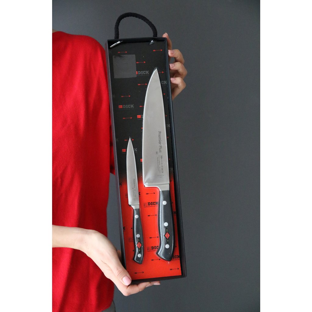 Das Set aus geschmiedeten Qualitätsmessern der Premier Plus Serie umfasst Kochmesser in der Länge 21 cm und Gemüsemesser in der Länge 12 cm. Mit diesem Set erhalten Sie die wichtigsten Küchenhelfer.