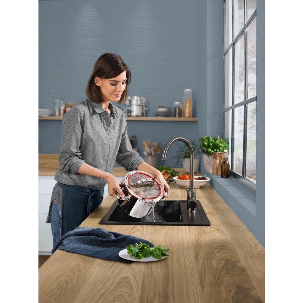 Das Kochgeschirr mit Funktion 4 hat außerdem einen breiten, gewölbten Rand, der das Ausgießen des Inhalts erleichtert. Dadurch wird verhindert, dass Flüssigkeit an den Außenwänden des Topfes heruntertropft oder -läuft. Die interne Messskala macht es einfach, die optimale Flüssigkeitsmenge zu messen. Töpfe sind leicht zu reinigen, sie können natürlich in der Spülmaschine gewaschen werden.