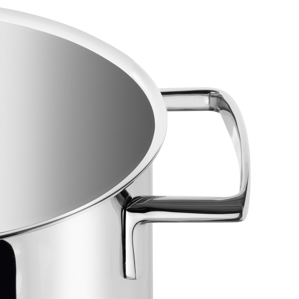 Die Stärke dieses Edelstahlkochgeschirrs ist auch der perfekt abdichtende Edelstahldeckel, der es ermöglicht, die Kochzeit zu reduzieren. Die Zutaten behalten so mehr Vitamine als bei langsamerem Garen. Die nicht brennbaren ergonomischen Griffe aus poliertem Edelstahl sind groß genug für eine bequeme und sichere Handhabung. Der breitere Rand der Behälter ermöglicht ein präzises Ausgießen des Inhalts ohne Unfälle. Die Töpfe sind innen glatt, hygienisch, geschmacksneutral und leicht zu reinigen.