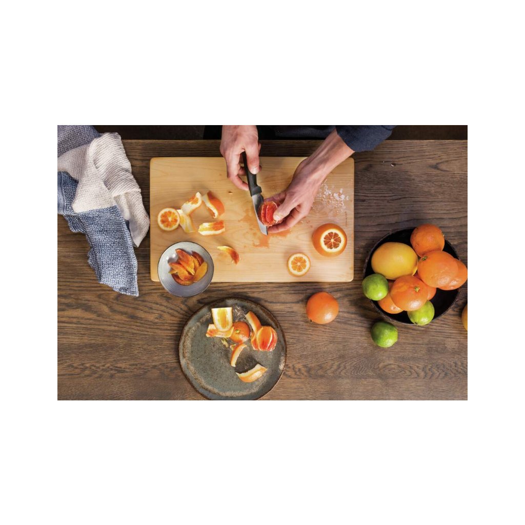 Kleine Messer werden auch in der Küche benötigt. Das Messer Fiskars aus der Hard Edge Serie mit gerader 9cm Klinge und scharfer Spitze ist ideal zum Schälen und Schneiden von kleinerem Gemüse und Obst. Er eignet sich zum Beispiel perfekt zum Ausschaben von neuen Kartoffeln oder Karotten, zum Ausstechen des Kerngehäuses aus einem Apfel, zum Halbieren einer Pflaume. Die Klinge aus hochwertigem, rostfreiem Hartstahl bleibt dank der speziellen Schärftechnologie LZR- EDGE™lange scharf.