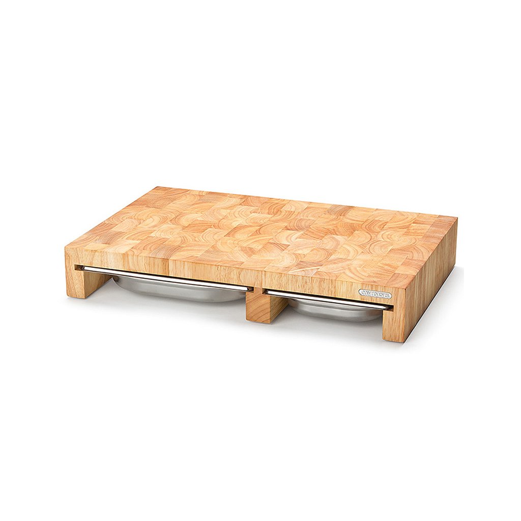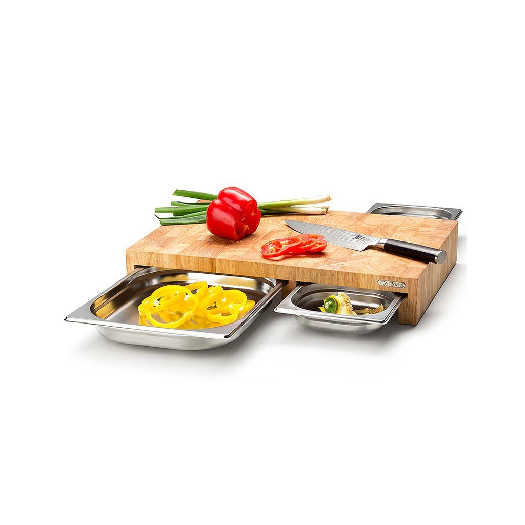 Der Schneidebrett mit praktischen Schubladen aus Edelstahl, die auch zum Backen geeignet sind.