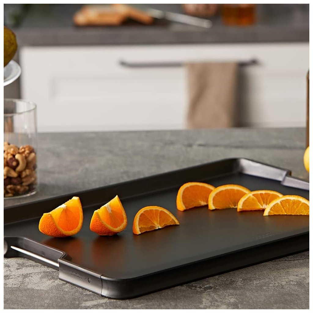 - erhöhte Ränder helfen, Krümel und Fleischsaft aufzufangen