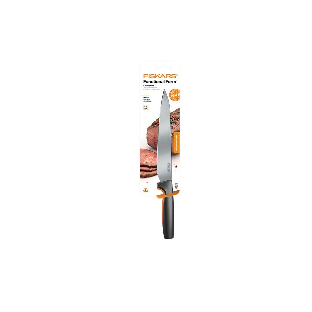 Für Köche, die elegantes Design und einfache Wartung schätzen. Das FISKARS Functional Form Cutting Knife ist ein Must-Have. Es hat eine lange, gerade und starke Klinge aus japanischem rostfreiem Stahl mit einer feinen Schneide. Es ist ideal zum Schneiden von Fleisch.