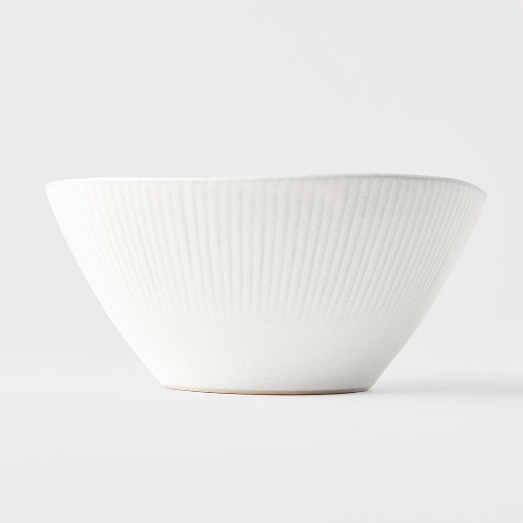 - Schüssel SNOW LEAF mit einem Durchmesser von 18 cm und einem Volumen von 500 ml bringt die ruhige Reinheit einer matten weißen Glasur und feine vertikale Linien, die an die Struktur von frisch gefallenem Schnee erinnern.