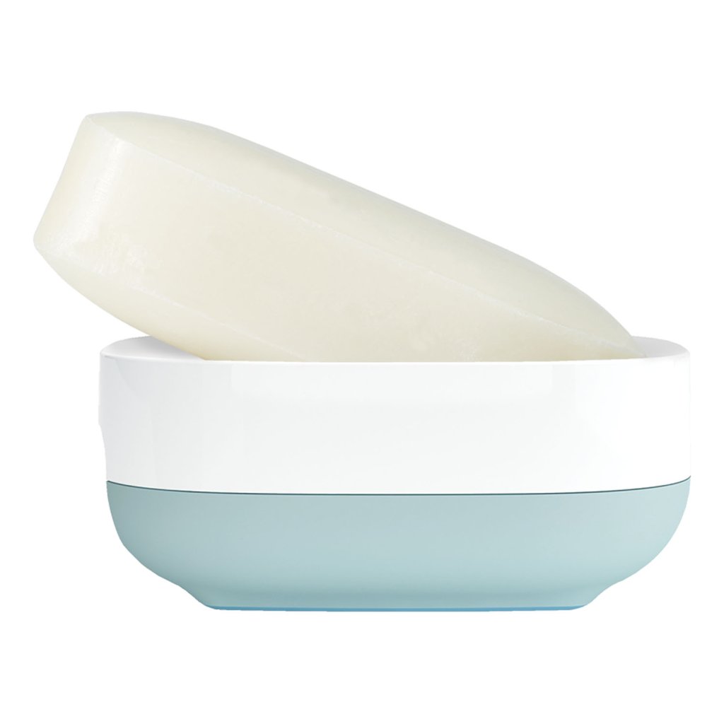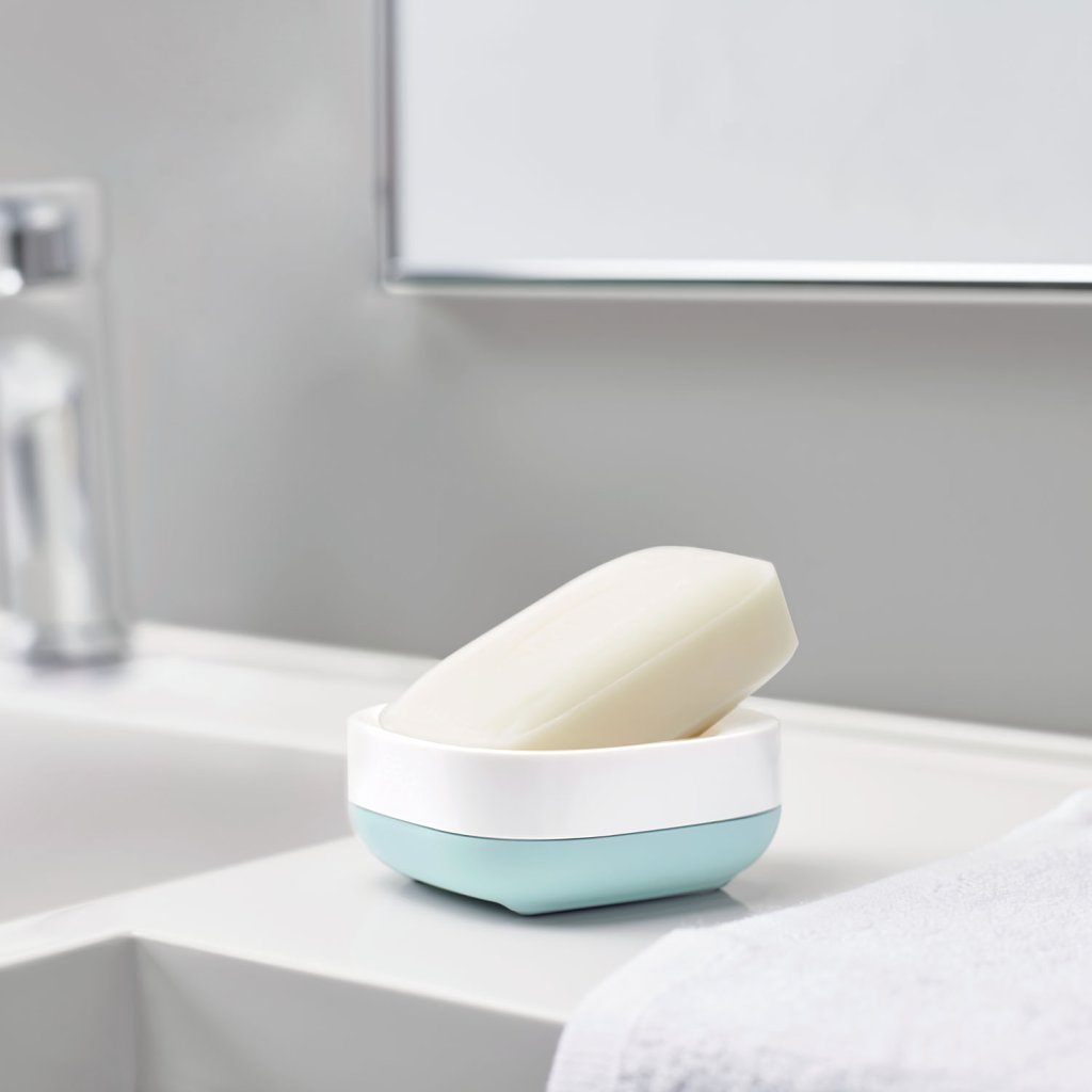 Mit der intelligenten Seifenkiste SLIM von Joseph Joseph wird Ihnen das nicht passieren. Die Seife wird schräg hineingelegt, und dank des Lochs in der oberen Schale fließen überschüssiges Wasser und geschmolzene Seife in die untere Schale, die ebenfalls mit einem weiteren Loch versehen ist, um ein schnelles Trocknen zu gewährleisten. Außerdem erleichtert die Form dieser Seifenschale die Entnahme der Seife und nimmt weniger Platz am Waschbecken ein als andere Schalen.