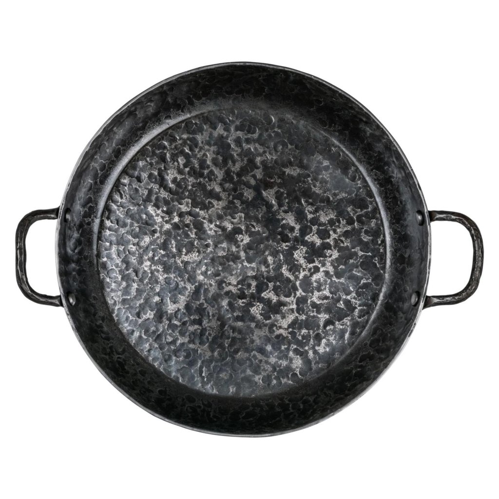 - Das handgeschmiedete Gehäuse aus Kohlenstoffstahl verleiht der Pfanne Haltbarkeit bei starker Beanspruchung und ein angenehmes Gefühl der Sicherheit beim Arbeiten mit höheren Temperaturen.