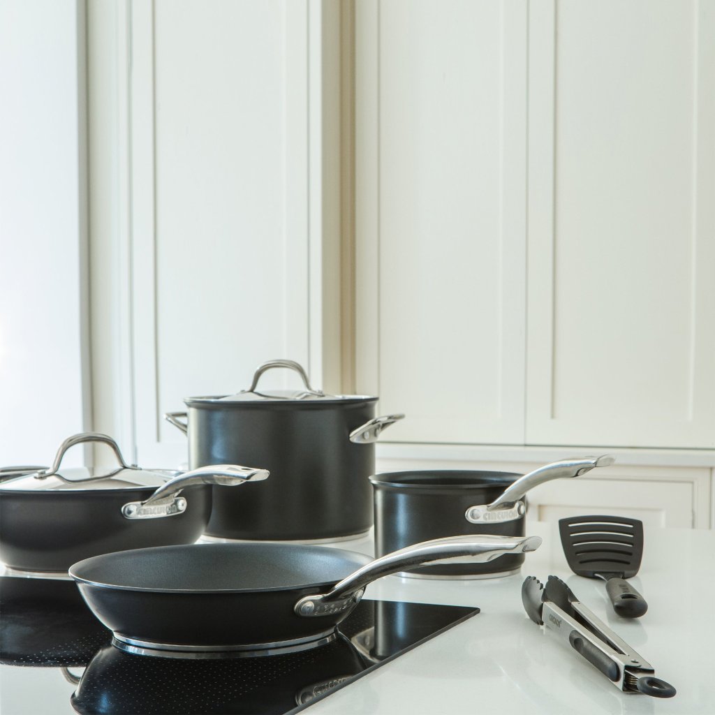 - Die Aluminiumkern-Konstruktion mit einem extradicken Stahlboden verteilt die Hitze gleichmäßig über die gesamte Oberfläche des Kochgeschirrs und hilft so, ein Anbrennen zu verhindern und eine präzise Kochkontrolle zu gewährleisten