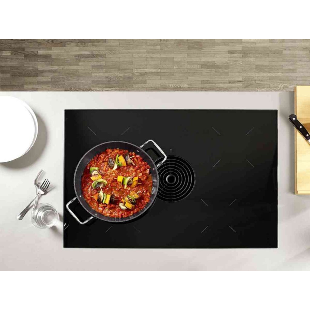 Die Pfanne hat einen hohen Rand und eine extra große Bratfläche, so dass Sie leicht mehrere Portionen auf einmal zubereiten können.