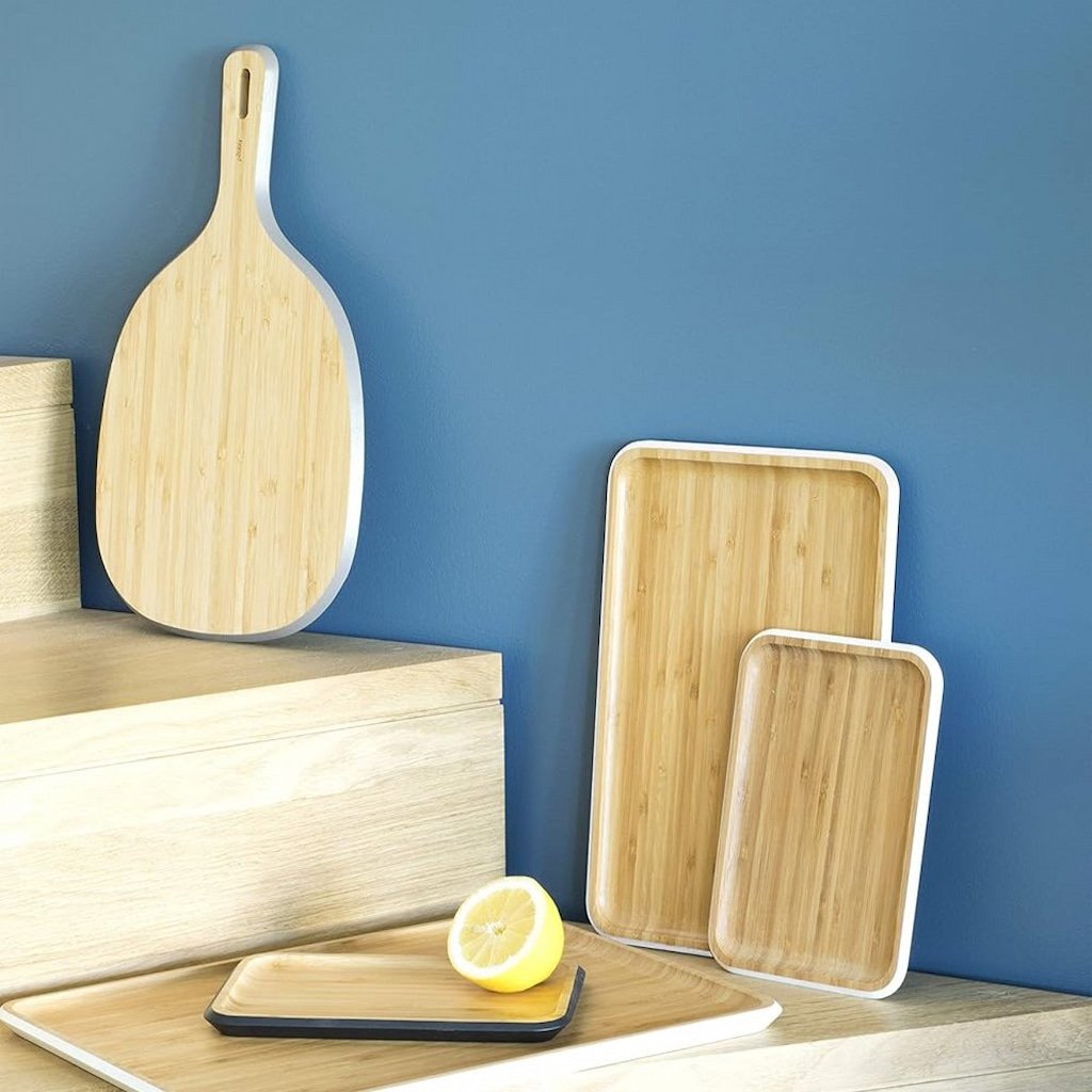 - die Farbgestaltung in Naturholz und weißer Kante lässt sich gut mit anderen Küchen- und Tischgeräten kombinieren