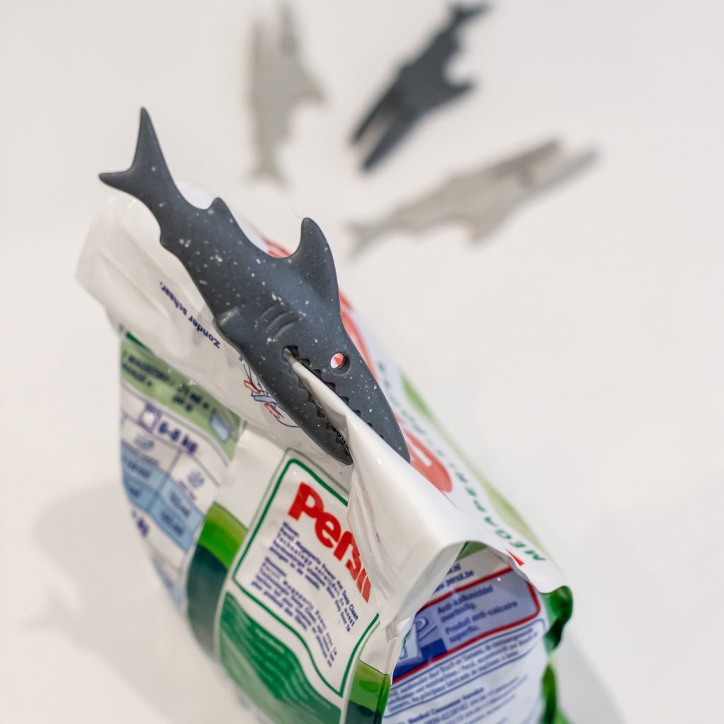 Die Klammer SHARKY, die von traditionellen Wäscheklammern inspiriert wurden, werden in einem zweiteiligen Set geliefert und eignen sich nicht nur zur Unterhaltung Ihrer Kinder beim Frühstück, sondern sie können vor allem bei dem Umgang mit Kleidung, Waschmitteln oder Lebensmitteln verwendet werden.
