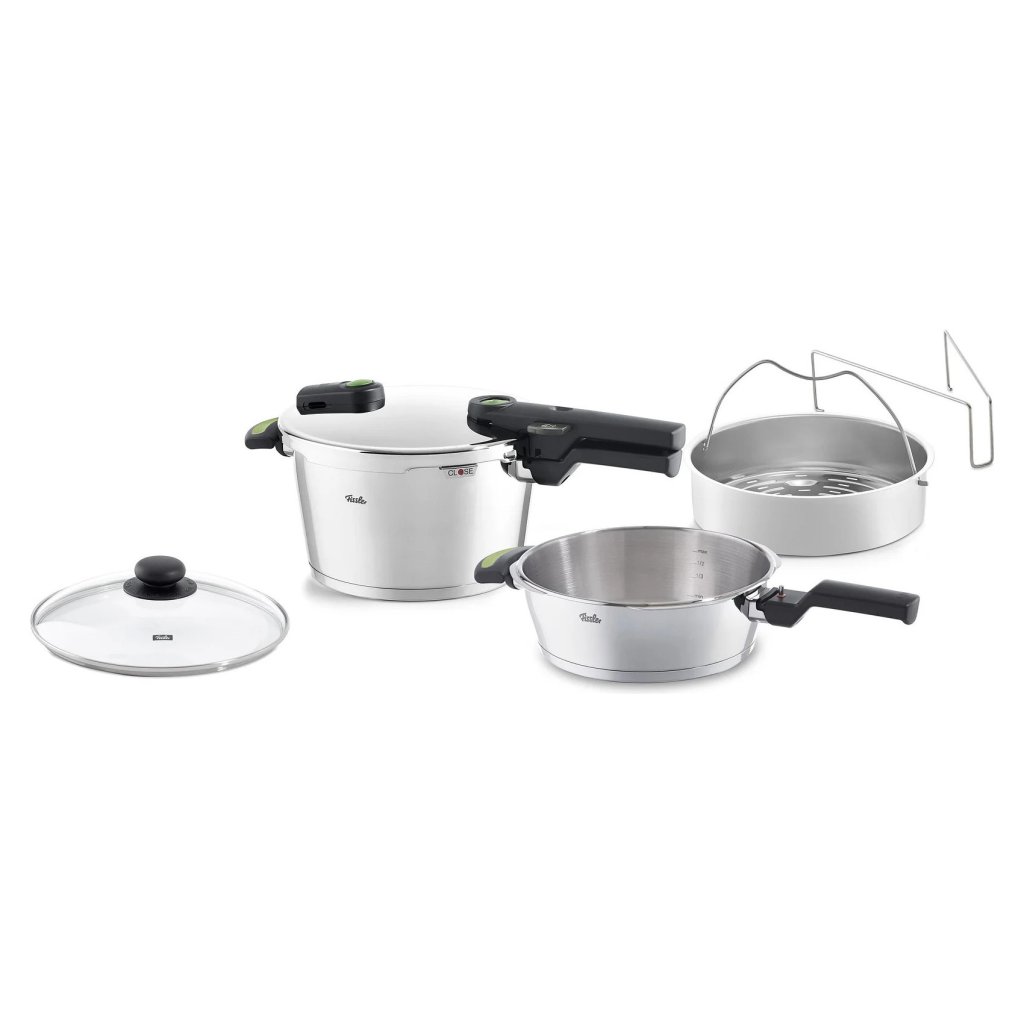 Der Schnellkochtopf VITAQUICK GREEN macht es leicht, die moderne Art des Kochens zu entdecken. Das spart Zeit und Energie und sorgt gleichzeitig für gesundes Kochen. Wir bieten ihn auch in einem praktischen Set mit 2 Schnellkochtöpfen und einem Glasdeckel an.