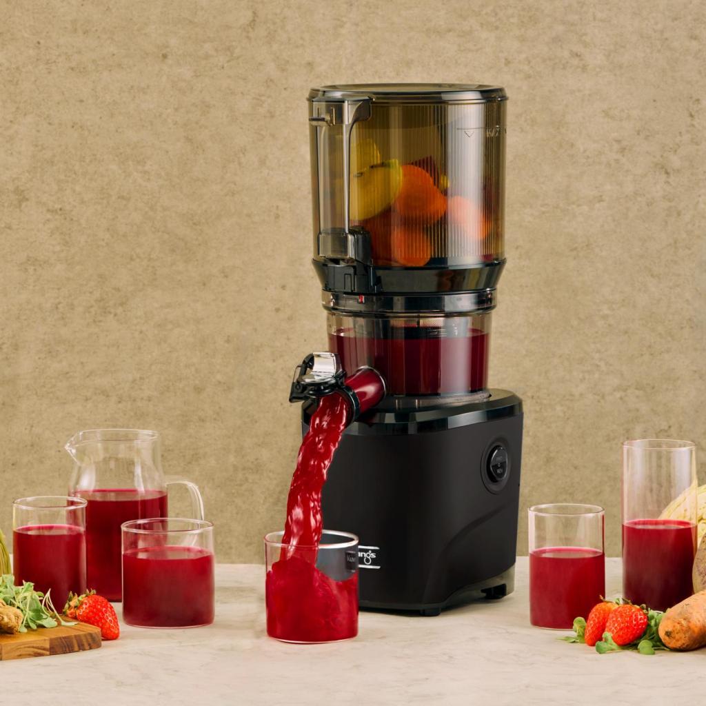- Das Aufschneiden in der Presskammer führt zu weniger Oxidation und minimiert die Bräunung des Saftes, so dass das Getränk mehr Nährstoffe behält und länger frisch bleibt.