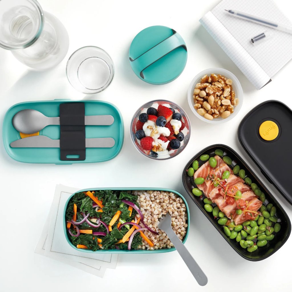 Sie können die einzelnen Behälter einzeln sowie zusammen verwenden und mit orangefarbenem Silikonband verbinden. Kochen Sie etwas Leckeres und nehmen Sie es mit zur Arbeit oder auf eine Reise - im Lebensmittelbehälter von Lékué!