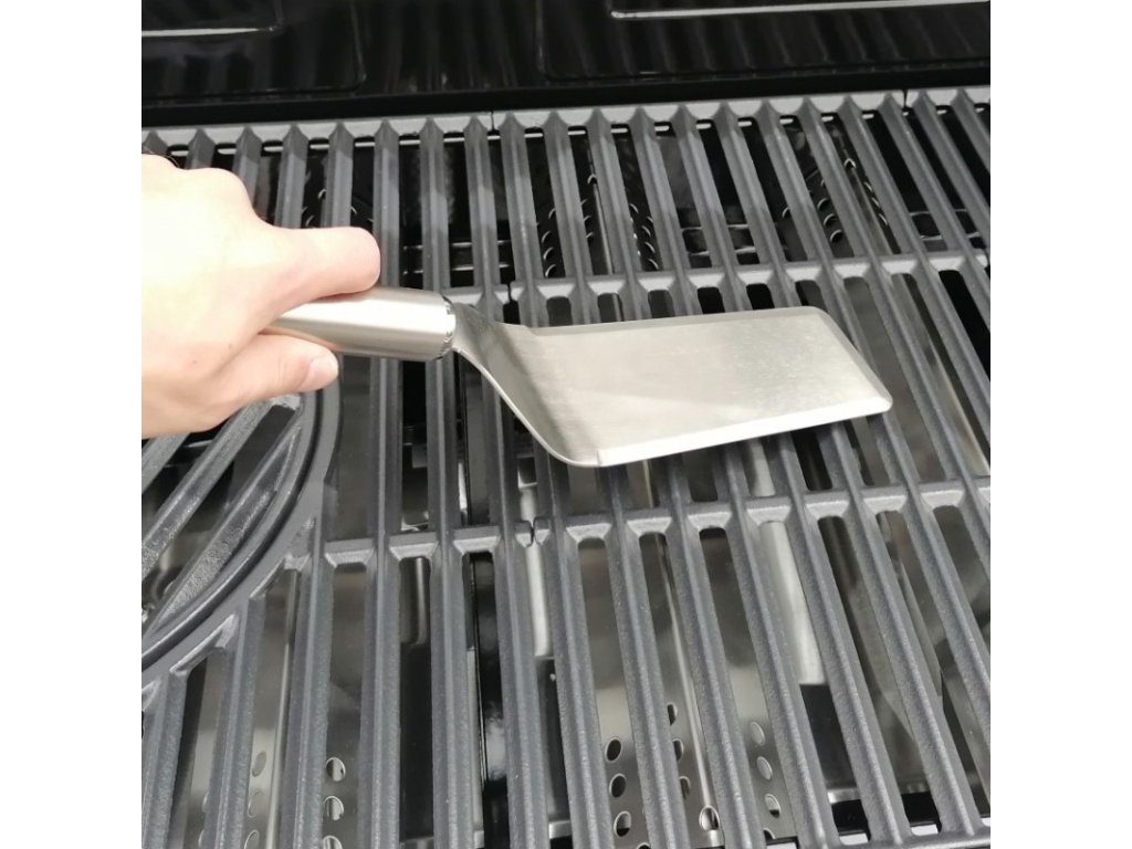 Er ist leicht und liegt gut in der Hand. Durch die Schlaufe am Ende des runden Griffs können Sie den Spatel überall dort aufhängen, wo Sie ihn brauchen. Der Spatel hat abgerundete Ecken, so dass das Wenden oder Rühren von Speisen auf der Grillplatte damit ein Kinderspiel ist.
