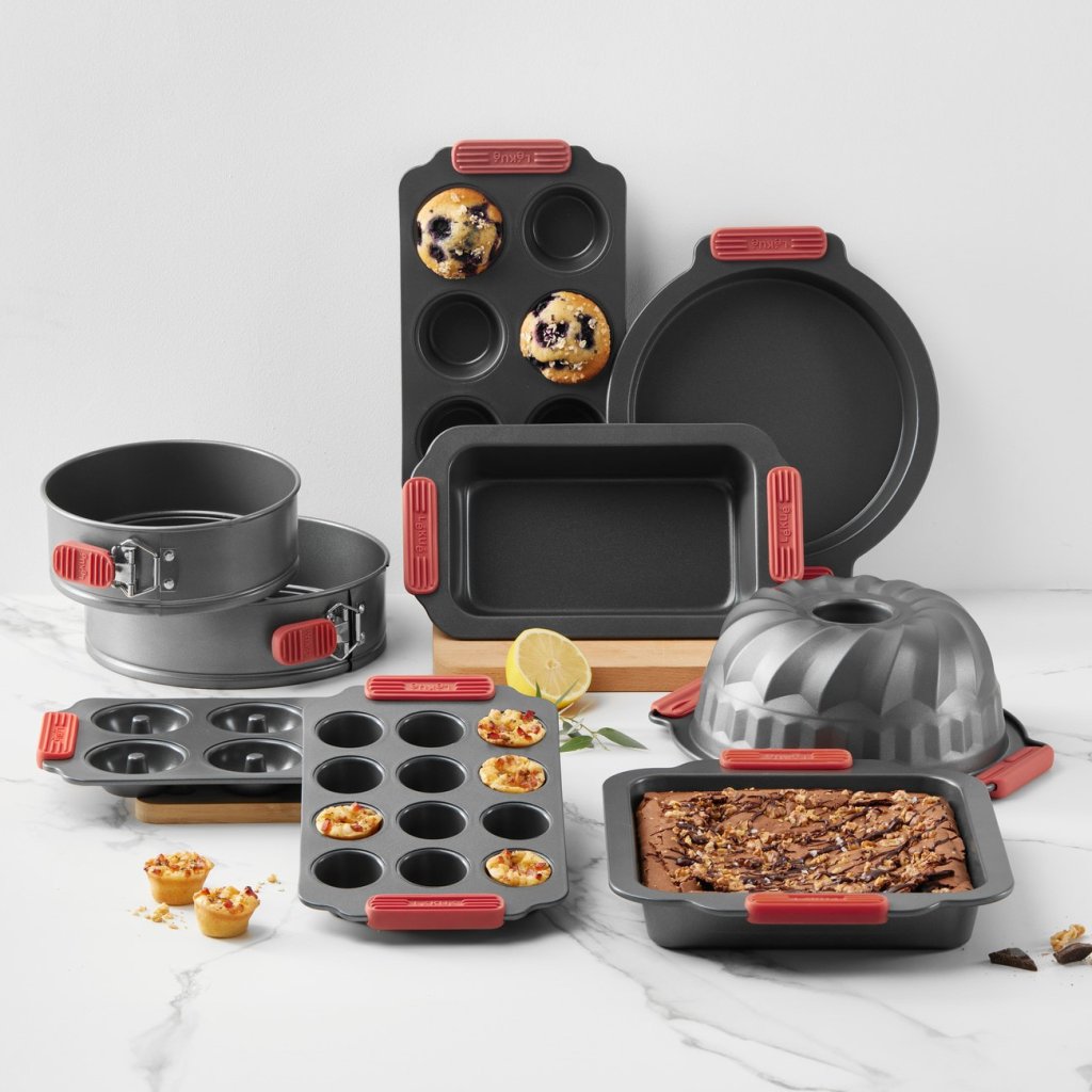 - moderne mattgraue Optik mit roten Silikondetails bringt Funktionalität und Stil in die Küche