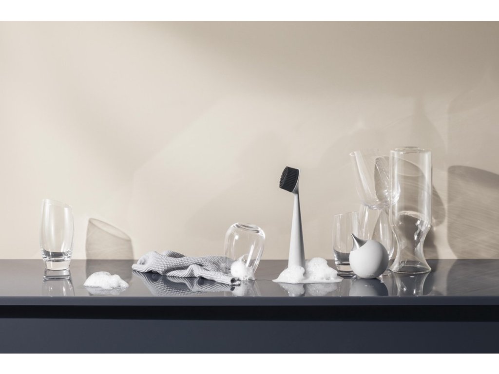 Die Spülbürste hat einen praktischen und effektiven Abstreifrand, der hilft, hartnäckigen Schmutz zu entfernen und einen hohen Hygienestandard in der Küche zu gewährleisten. Weiche, aber strapazierfähige Silikonborsten trocknen schnell. Die Bürste kann bequem in aufrechter Position abgelegt werden - der Griff ist ausbalanciert, um ein Herunterfallen zu verhindern. Die Bürste ist leicht zu reinigen und zu pflegen, kann hohen Temperaturen standhalten und ist spülmaschinenfest. Der Bürstenkopf ist austauschbar.