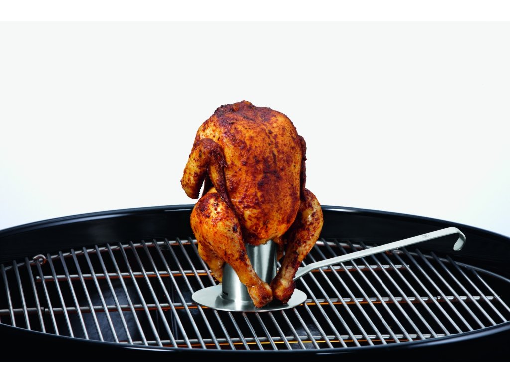 Außerdem können Sie bis zu 250 ml Ihres Lieblingsbiers, Weins oder einer anderen Flüssigkeitin die Mitte des Rosts gießen, die während des Grillens verdampft und dem Hähnchen einen erstaunlichen Geschmack und ein Aroma verleiht.