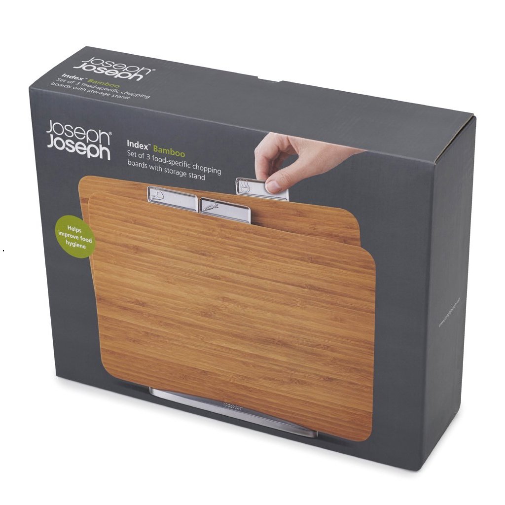 Schneidebrett Set INDEX BAMBOO 35 x 29 cm, mit Ständer, Bambus, Joseph Joseph