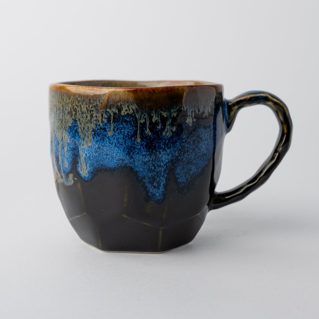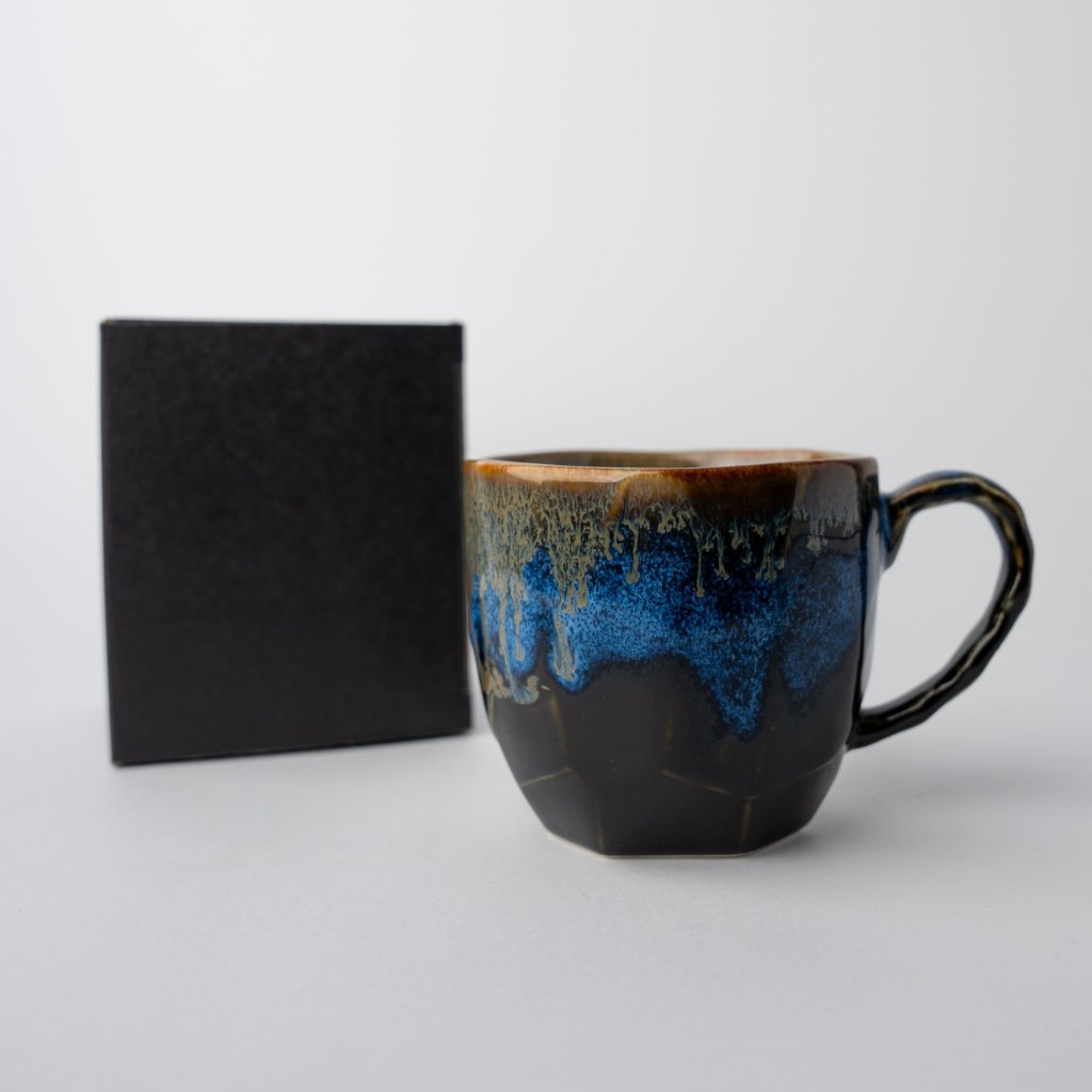 - Tasse mit schwarzem und leuchtend blauem Tropfeffekt für Kaffee, Tee und andere Getränke