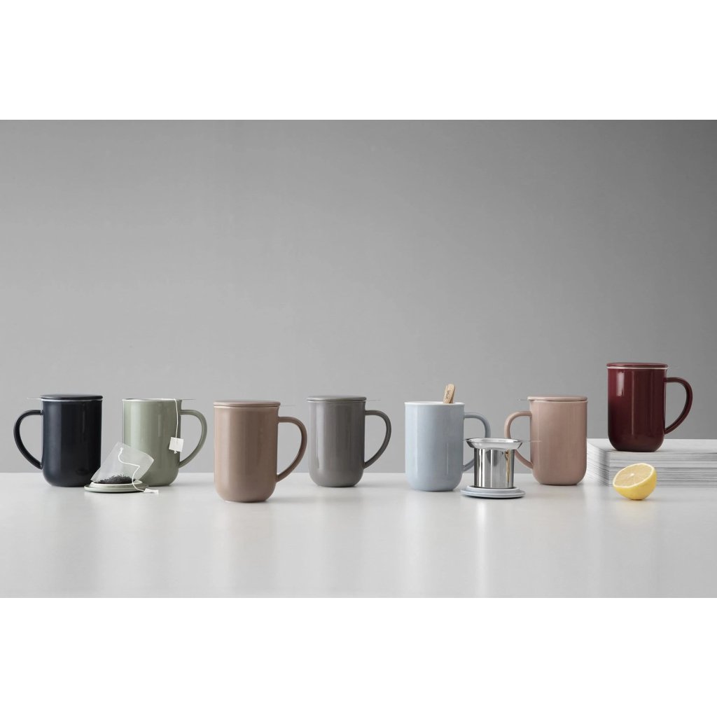 Die Teetasse Minima Balance in einem skandinavischen Blauton wird mit einem eigenen Teesieb für Blatttee und einem Deckel geliefert. Der Deckel hält das Getränk heiß sowie gut aufgebrüht und dient nach dem Herausziehen des Tees als Untersetzer für das Teesieb. Es ist ganz einfach, und mit dieser Tasse haben Sie alles, was Sie brauchen, um ein perfektes Teeritual genießen zu können. Nur Sie alleine!