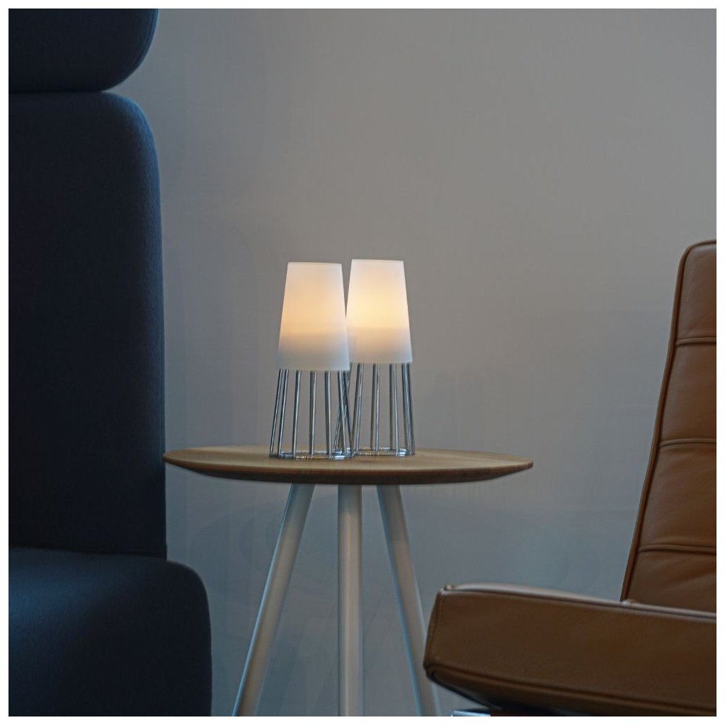 - material: verchromter Stahl, weißes Glas