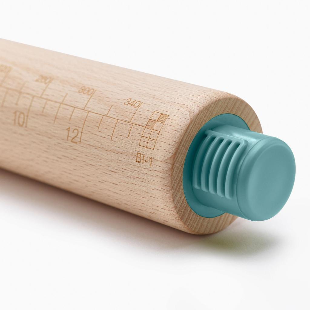 - Ohne aufgesetzte Ringe kann die Walze als klassisches Modell zum freien Ausrollen von Teig nach eigenem Ermessen verwendet werden.