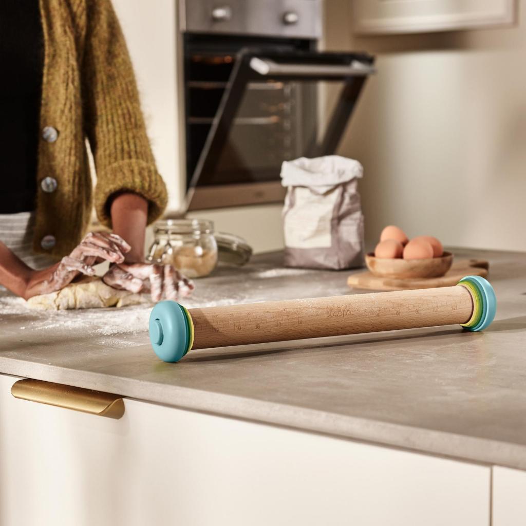 - Die verstellbare Joseph Joseph DUO OPAL Walze ermöglicht das präzise Ausrollen von Teig auf die gewünschte Dicke beim Backen von Keksen, Kuchen und hausgemachter Pizza.