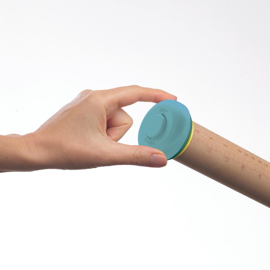 - Fünf Paar abnehmbare farbige Ringe stellen die Walzhöhe einfach auf 2, 4, 6, 8 oder 10 Millimeter je nach Rezept ein.