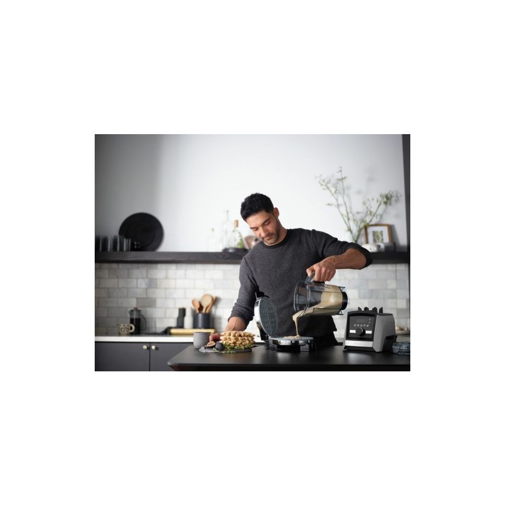- Automatische Erkennungstechnologie für die drahtlose Verbindung von Anbaugeräten (NFC) stellt automatisch Programme und maximale Mischzeiten entsprechend der Größe des Behälters ein.