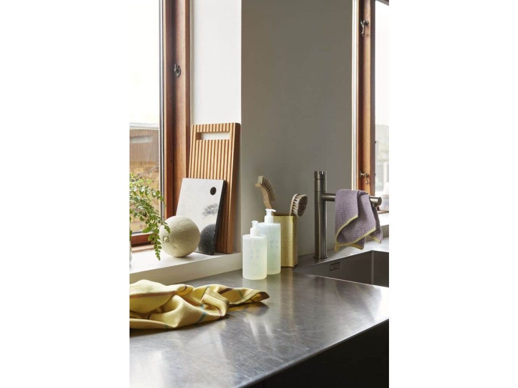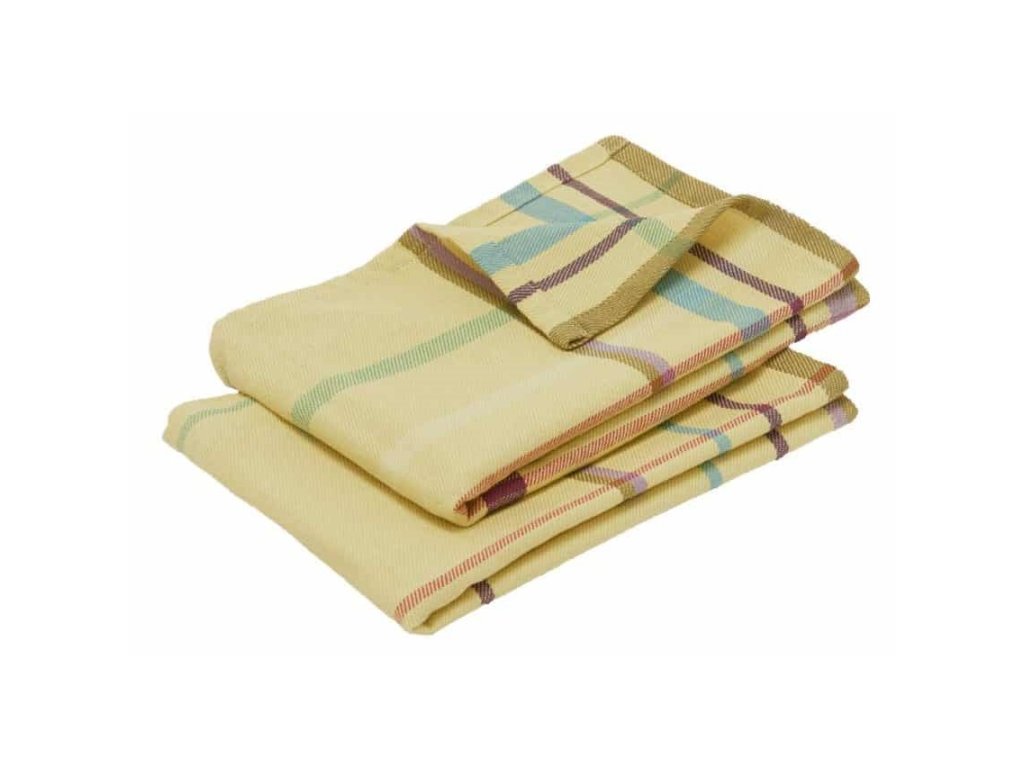 Die Geschirrtücher COFFEE (zwei im Set) sind aus Baumwolle in einem gestreiften und karierten Muster gefertigt. Die hellen Farben - darunter vor allem das Gelb - schaffen eine beruhigende, angenehme Atmosphäre und machen das Abtrocknen des Geschirrs gleich viel optimistischer. Der Aufhänger aus Textil verhindert, dass die Geschirrtücher herunterfallen, was sicherlich sehr hilfreich ist.