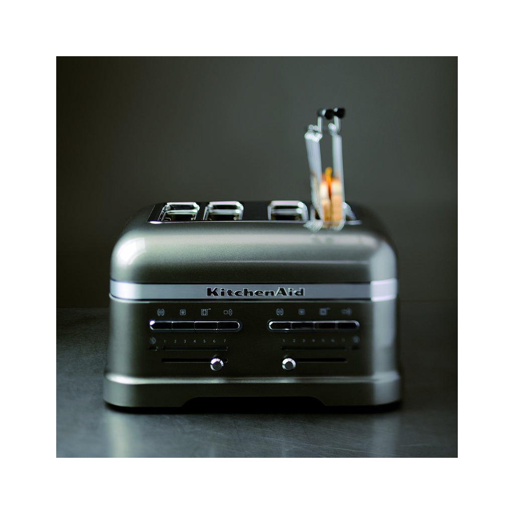 Es heißt, das Leben bestehe aus kleinen Dingen. Wie wäre es also, den Tag mit einem goldenen Toast zu beginnen oder ihn mit einem warmen getoasteten Sandwich zu beenden? Der Artisan-Toaster bietet Ihnen genau dieses Vergnügen. In KitchenAid haben sie ihn neben seinem stilvollen Design mit einer Reihe nützlicher Funktionen ausgestattet. Ob es der eingebaute Sensor ist, der das erhitzte Brot automatisch einlegt und auswirft (und es warm hält, bis Sie es aus dem Toaster nehmen), die sieben Toaststufen oder die praktische Auftaufunktion. Kurzum, ein unschätzbarer Helfer, der sich so gut in Ihre Küche einfügt, dass Sie sich nicht mehr an eine Zeit erinnern können, in der er nicht Teil Ihres Lebens war.