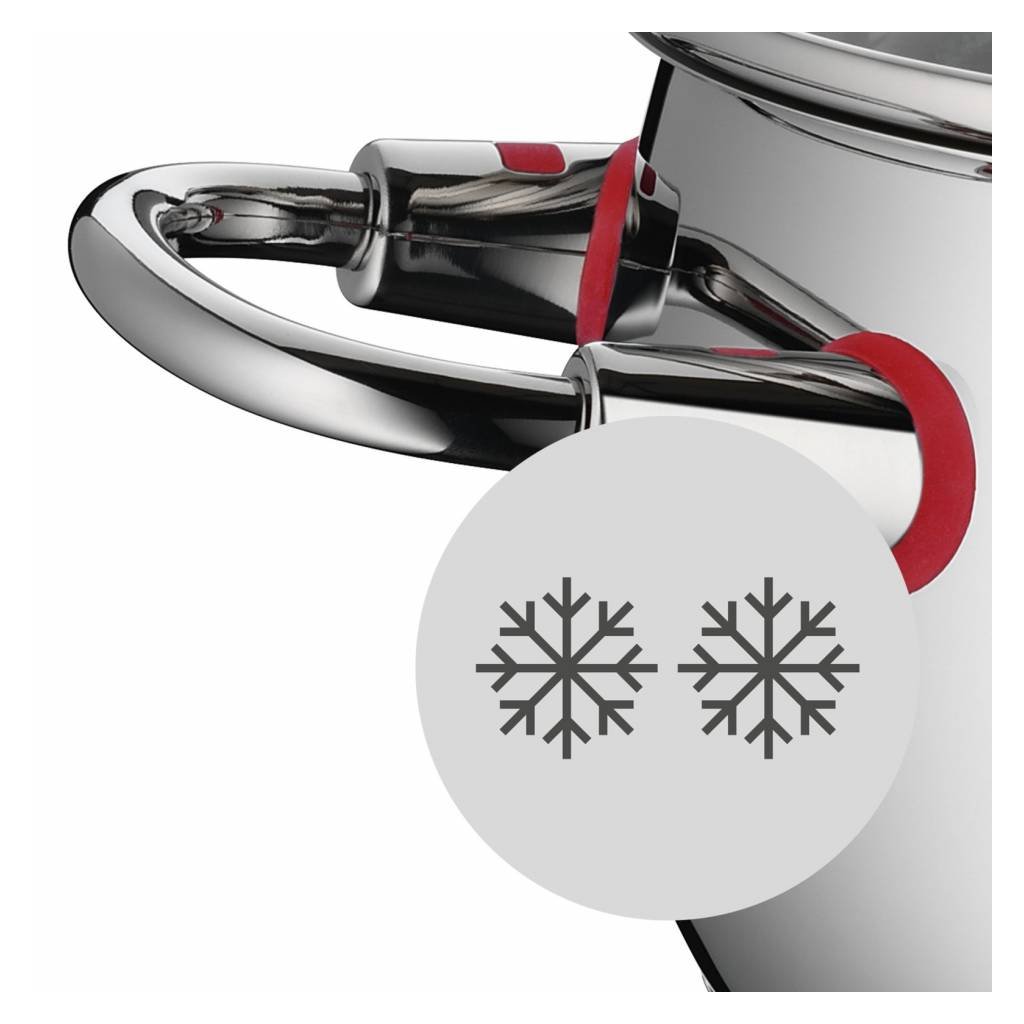 - die patentierte Cool+ Technologie ermöglicht es, die Edelstahlgriffe ohne Verbrennungsgefahr zu berühren (erkennbar an der roten Umrandung)