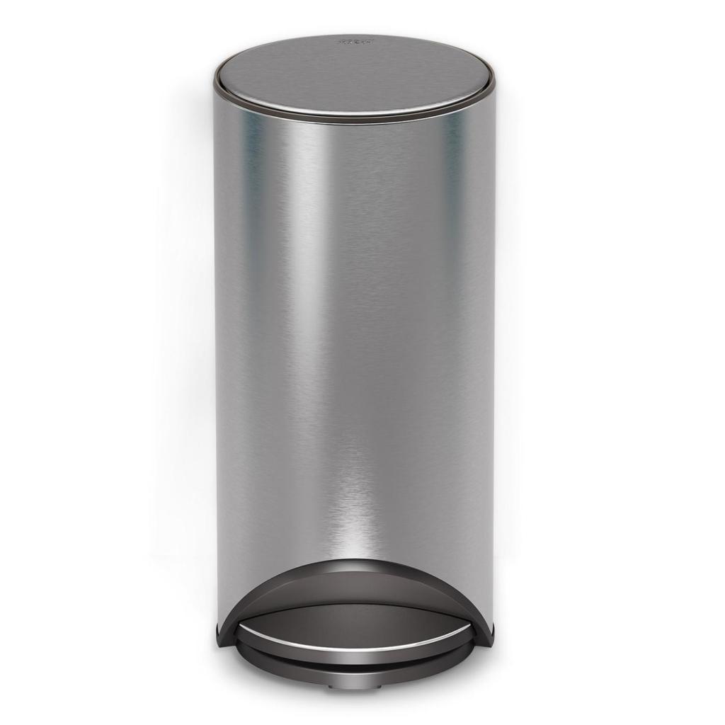 Einige Mülleimer versuchen, unauffällig zu sein. Dieser hier ist so souverän unauffällig, dass man ihn bemerkt. Ein Edelstahlzylinder mit einer sanft geschwungenen Linie wirkt fast wie ein Designobjekt, das zufällig Ihren täglichen Abfall bewältigen soll.