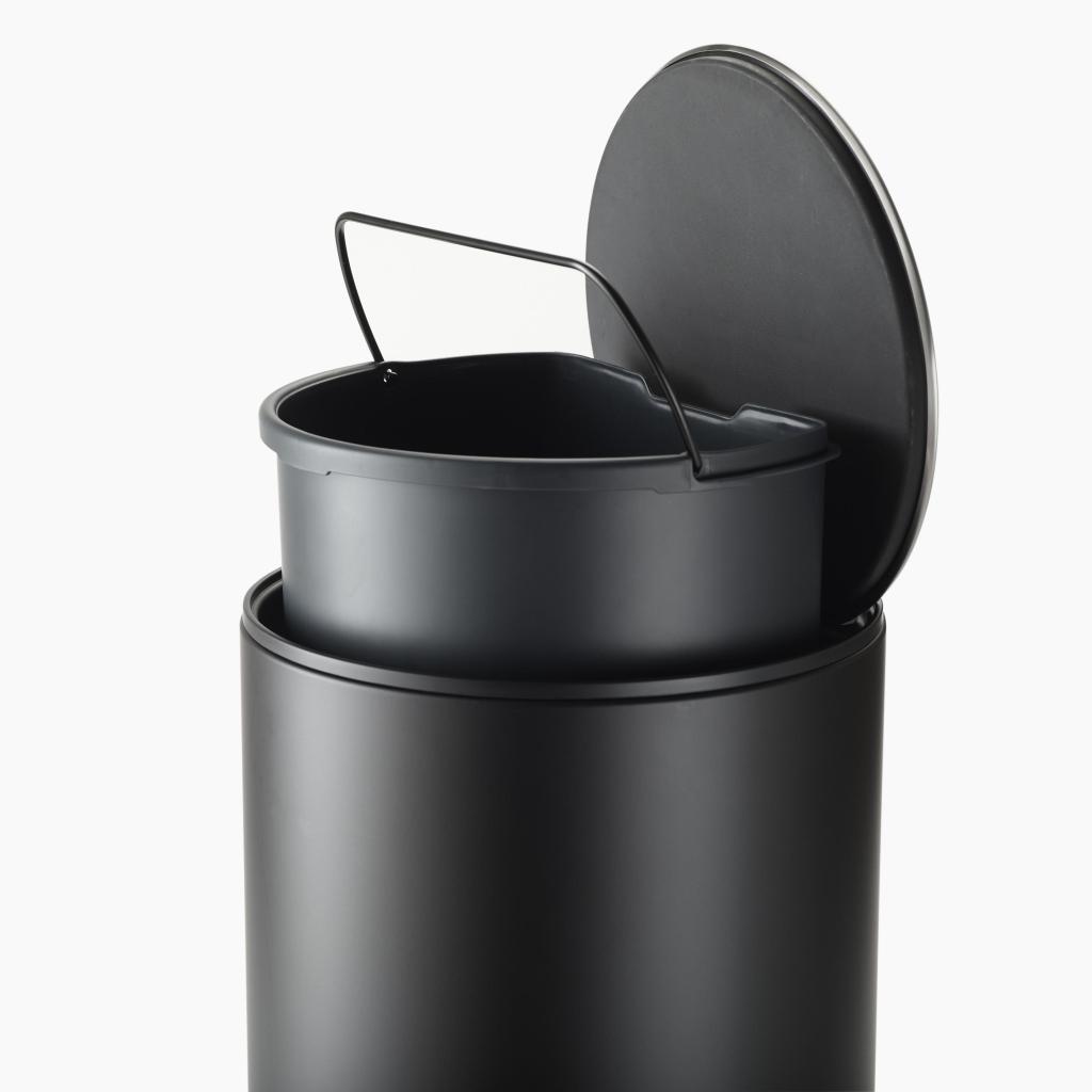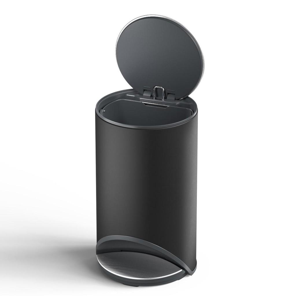 - Tretmülleimer ARC in elegantem Schwarz dient als praktische und stilvolle Lösung für die hygienische Entsorgung von Abfällen in Küche, Bad oder Arbeitsbereich.