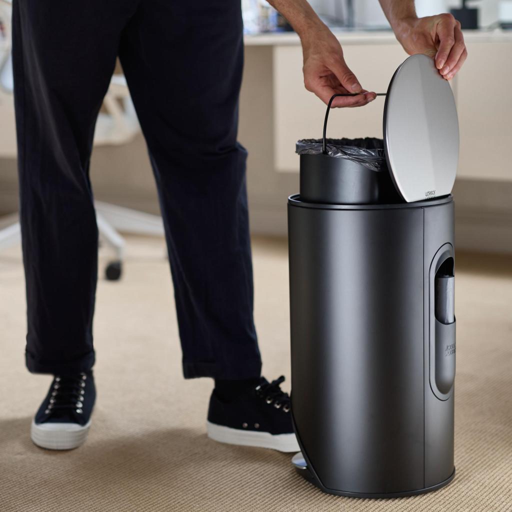Der schwarze Mülleimer ARC wirkt fast unauffällig, aber gerade deshalb funktioniert er umso besser. Sie stellen ihn neben das Waschbecken, ins Büro oder ins Schlafzimmer, und er fügt sich einfach ein. Er drängt sich nicht auf, schreit nicht, er sammelt nur leise die Beweise Ihres Alltags.