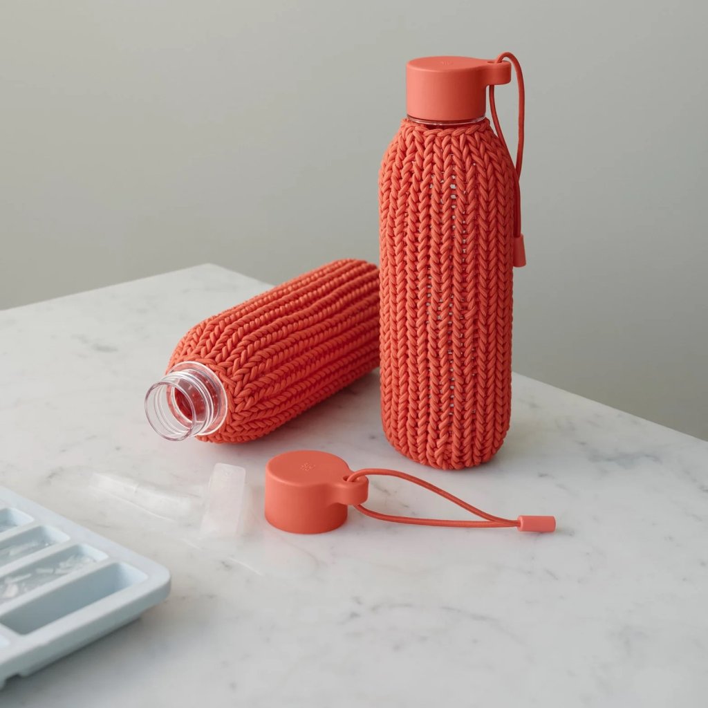 - Der moderne Look wird durch eine stylische Strickhülle ergänzt, die für einen festen Griff sorgt und die Flasche bei Stößen schützt
