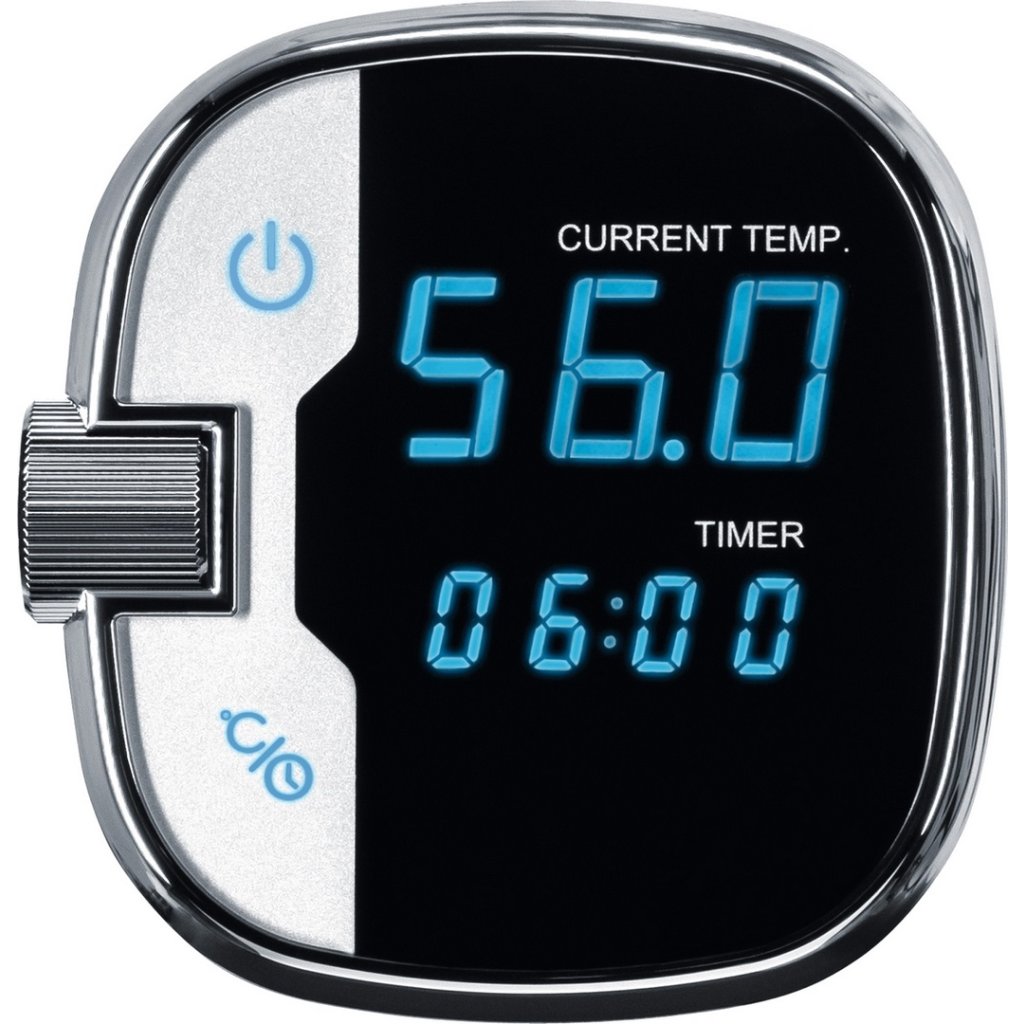 Der Kocher ist portabel, Sie können ihn in jedem Behälter mit einer Tiefe von mindestens 15 cm verwenden. Es ist einfach zu bedienen und verfügt über ein LCD-Display, einen Timer und eine präzise Temperaturregelung. Es ist die ideale Wahl für alle, die gerne bei einer konstanten niedrigen Temperatur kochen.